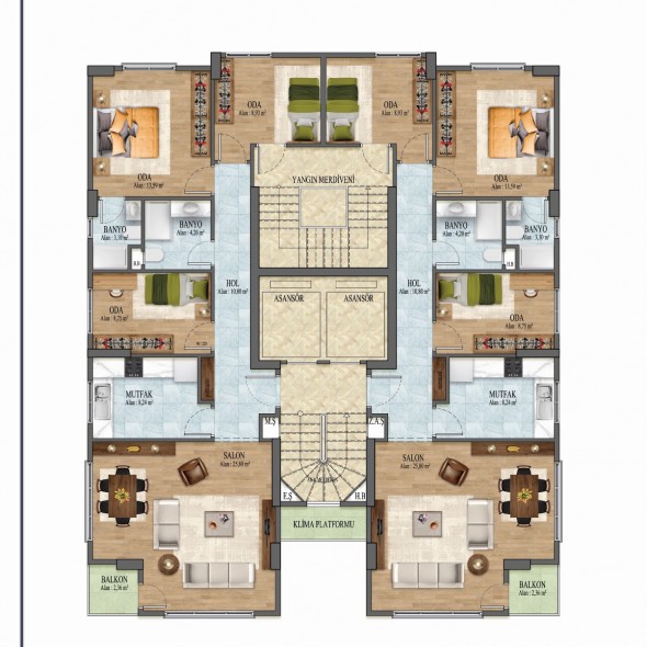 Brüt 125 m² - net 90 m² 3+1 Ebeveyn Banyolu Daire