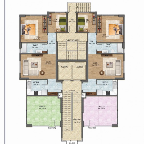 Giriş Kat (Önde 2 Dükkan, Arka Cephede 2 Daire)